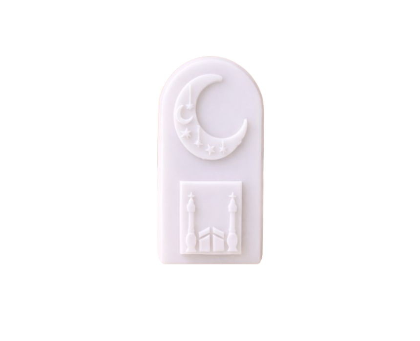 This textured masjid arch features a serene crescent moon and star design combined with a mosque silhouette, creating a calm and spiritual decorative accent. Crafted with a smooth or textured finish, it brings warmth and meaning to Ramadan and festive settings. Ideal for prayer corners, consoles, or tables, it enhances spaces with peaceful elegance.