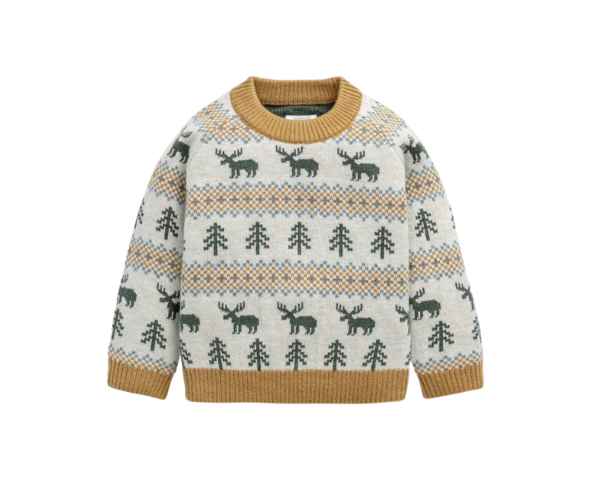 This Moose Knitted Jumper is a cozy fairisle-style knit designed to keep little ones warm and comfortable, featuring a cute moose detail for a playful seasonal touch. Finished with long sleeves, ribbed hem, collar and cuffs, plus a popper back opening for easy dressing, it’s both practical and charming. Style it with jeans, joggers or cord trousers for everyday wear or cozy winter outings.