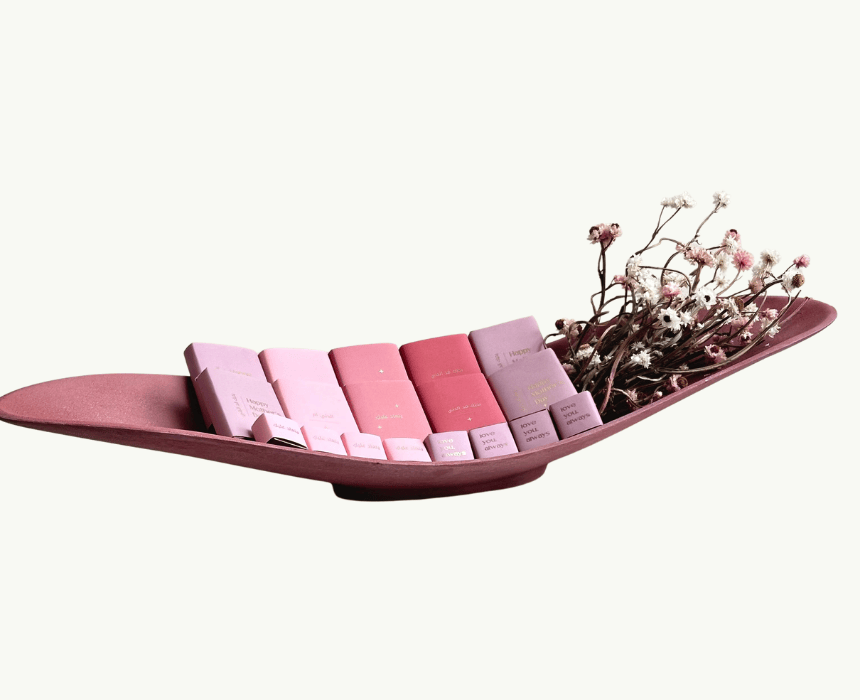 Elegant and modern gift for the moms in your life! A gift with soft colors combined with chocolate bars with the most unique flavors to comfort their hearts!