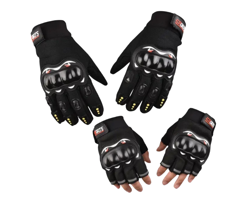 These high-performance motorcycle gloves provide protection, comfort, and control for daily commuting, sports riding, or outdoor adventures. Reinforced knuckles guard against impact, while breathable, lightweight fabric keeps hands cool. Anti-slip fingers and palm, adjustable wrist straps, and full- or half-finger options ensure a secure, versatile fit for every rider.