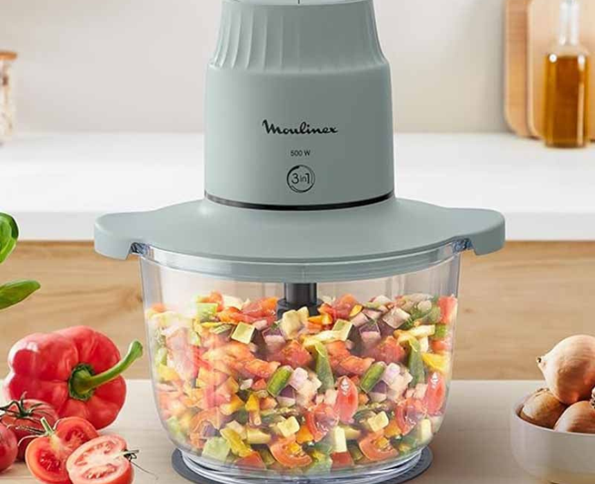 The Moulinex DJ603127 Mini Chopper features a powerful 500W motor, a durable 1L glass bowl, and two speed settings for fast and precise chopping of vegetables, herbs, nuts, and meat. Compact and easy to use, it fits neatly on any countertop and can be styled as a sleek everyday kitchen essential alongside modern appliances.