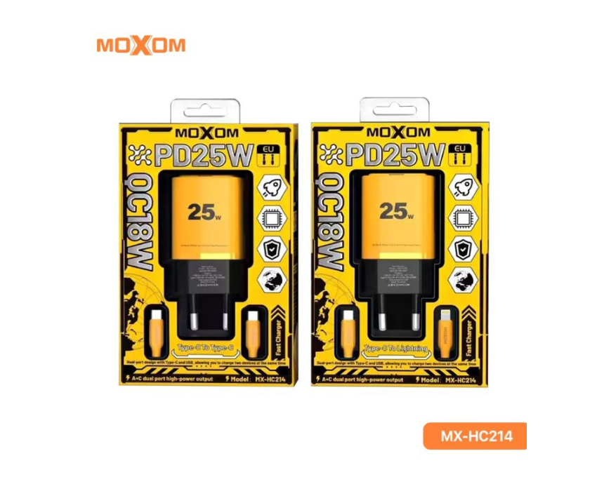 This Moxom fast charger delivers up to 25W of power through a USB C to Lightning connection for quick and reliable charging. Designed to support fast charging for compatible Apple devices, it provides stable performance for everyday use at home, work, or while traveling. A compact and practical solution for efficient daily charging.