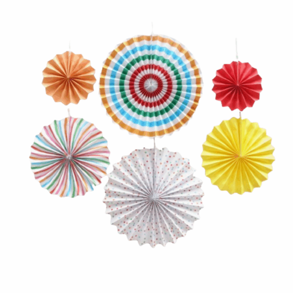 The Navy Multicolored Paper Fan Set includes 6 decorative fans: 2 of 20 cm, 2 of 30 cm, and 2 of 40 cm. Perfect for parties, birthdays, or festive events, these colorful fans add a vibrant and cheerful touch to any celebration. Easy to hang or display, they create a fun and lively atmosphere.