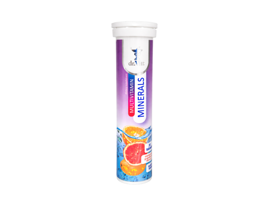 Dr. Vitt Multivitamin + Minerals Effervescent Tablets provide a complete blend of essential vitamins and minerals to support overall health and well-being. Designed to aid the immune, cardiovascular, nervous, and skeletal systems, each tablet dissolves in water for quick absorption and a refreshing, easy-to-drink format. Ideal for daily use, it offers a convenient way to meet your nutritional needs and maintain a balanced, healthy lifestyle.