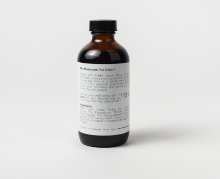 Introducing our exquisitely hand crafted Mushroom Boosted Fire Cider. Balanced, hot but doesn’t burn, mild on the stomach. To be taken as shots, diluted or to add umami to your food.