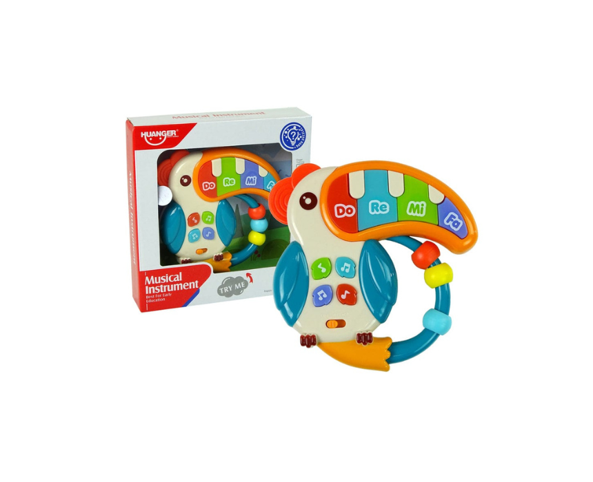 The musical piano parrot is a vibrant and playful toy that brings music and fun to any child’s room. Featuring colorful design and glowing light beads that move to cheerful melodies, it captures attention and sparks imagination. Suitable for ages 18 months and up and sized at 13×13 cm, it encourages sensory play, musical skill development, and makes a perfect gift for birthdays or holidays.