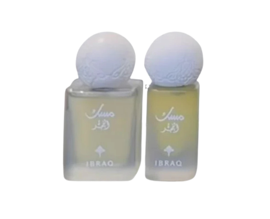 Musk Al Fajr by Ibraq Ibrahim Al Qurashi is a unisex Floral Fruity Gourmand fragrance available as a perfume and oil set. Launched in 2024, it opens with Calypsone, bergamot, and red berries, flows into a heart of lily, ylang-ylang, and jasmine, and settles on a base of musk, patchouli, and meringue. Perfect for those seeking a fresh, elegant, and long-lasting scent for any occasion.