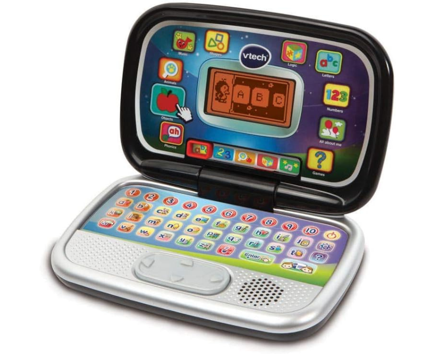 This interactive educational toy engages children with fun letter, word, number, shape, logic, animal, food, and music activities. Kids learn to spell, count, solve puzzles, identify animal sounds, categorize foods, and explore 40 tunes in Rock, Jazz, Reggae, and Country styles, promoting early learning, problem-solving, and creative development.