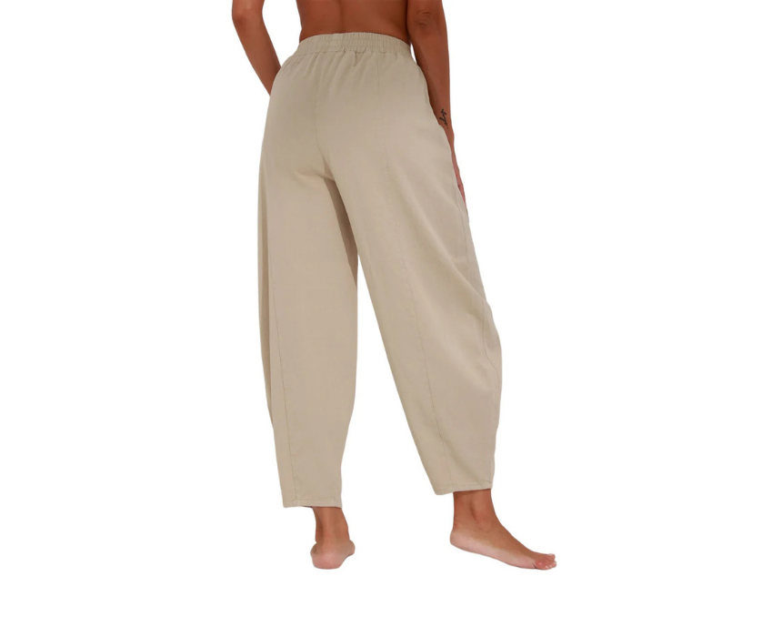 The N Trouser is a high-waist linen trouser offering a light, breathable feel and all-day comfort. Featuring an elastic waistband with drawstrings and front pockets, it pairs perfectly with casual tops or blouses for relaxed, stylish outfits. Made from 100% linen, fabric care includes machine wash at 30°C, tumble dry on low, dry in shade, medium-heat ironing, no bleaching, and do not dry clean.