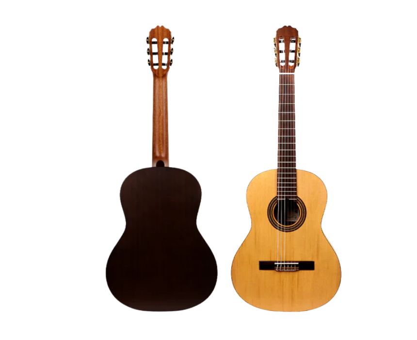 The Nashville Clara-CG 3/4 Classical Guitar features a solid “A” cedar top with African sapele back and sides, producing warm, rich tones ideal for young or smaller players. Measuring 36 inches, it offers comfortable playability and smooth response. Comes with a complementary guitar bag for easy transport and protection.