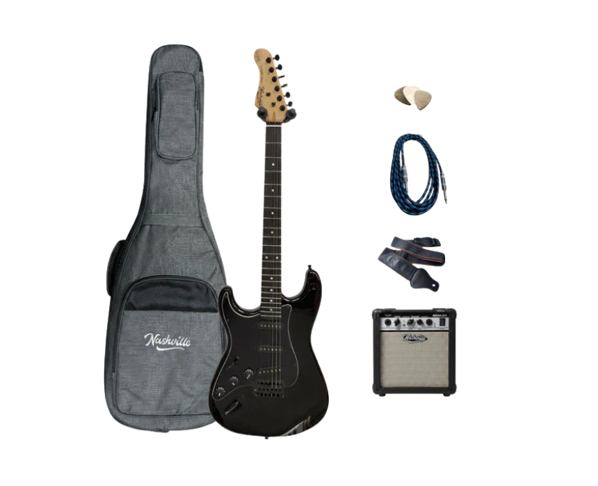 The Nashville Classic Rock Guitar Deluxe Edition – Left-Handed Full Package is a complete set designed for left-handed players. Perfect for beginners and enthusiasts, it includes everything needed to start playing, combining quality construction with a full accessory package.