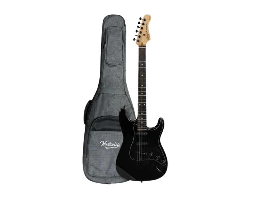 The Nashville Classic Rock Guitar – Deluxe Edition Full Black is a complete electric guitar set, offering quality construction and all essential accessories. Perfect for beginners and enthusiasts ready to start playing immediately.