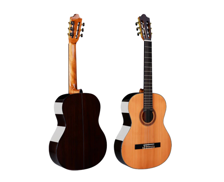 The Nashville Luz-SG 4/4 Classical Guitar features a solid “A” spruce top with rosewood back and sides, offering warm, rich tones and excellent resonance. Measuring 39 inches, it is ideal for both beginners and advanced players. Comes with a complementary foam bag for convenient protection and transport.