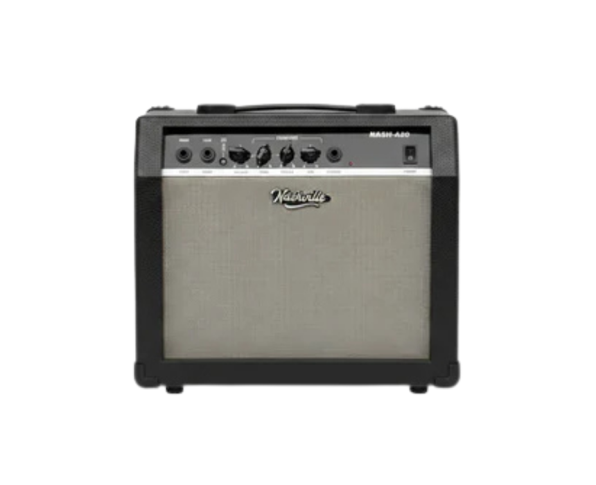 The Nashville Nash-A20 20W Guitar Amplifier delivers clear, powerful sound in a compact design, ideal for practice, small gigs, or home recording. Featuring versatile tone controls and durable construction, it provides reliable performance and rich guitar tones for both beginners and seasoned players.