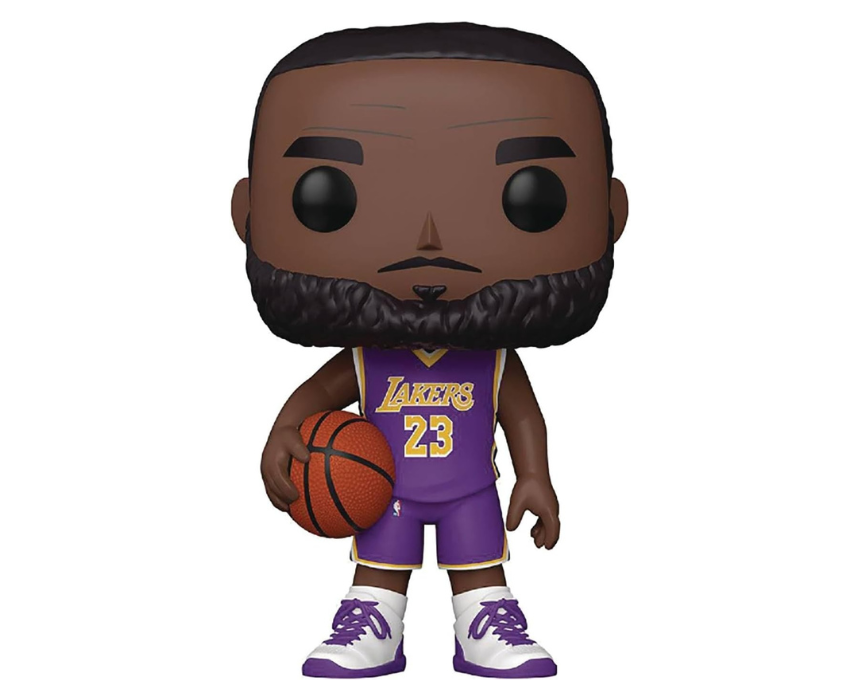 This NBA Lakers LeBron James Purple Jersey vinyl figure stands approximately 10 inches tall and features a stylized collectible design. Packaged in a display friendly box, it is ideal for fans and collectors of basketball themed figures. Perfect for shelves or desks, it adds a sporty and iconic touch to any collection.