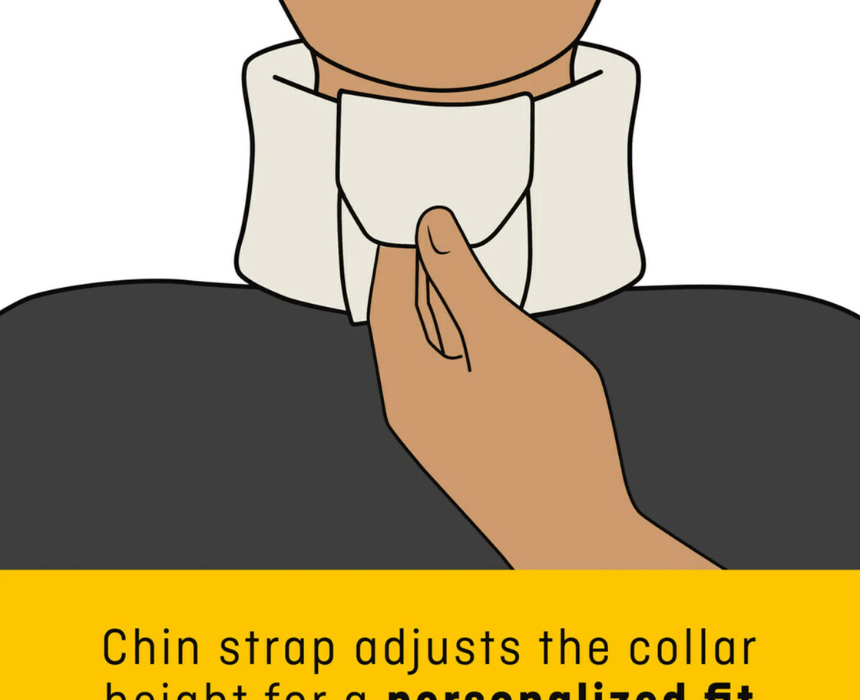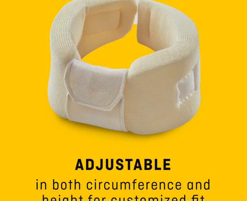 The FUTURO Cervical Collar offers reliable neck support with adjustable straps for customized height and circumference, ensuring a secure and comfortable fit. Made from plush breathable foam and covered in soft knit material, it helps stabilize the neck while keeping the skin cool and comfortable during recovery. Easy to wear under clothing, it fastens around the neck with the chin strap adjusted for proper support and alignment.