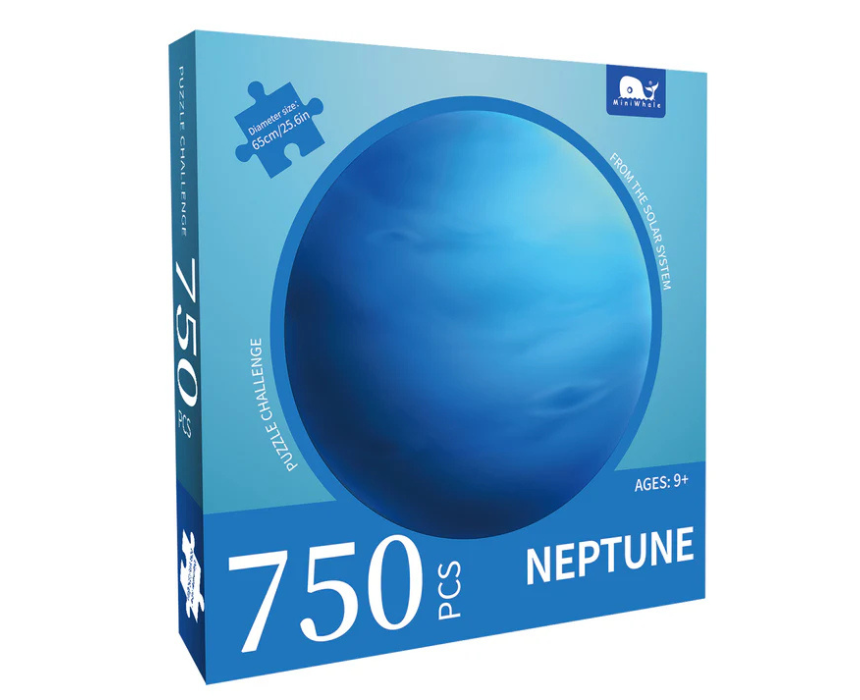 Neptune Round Jigsaw Puzzle 750pcs 65cm is a stunning circular puzzle featuring the deep blue planet with detailed textures and swirling atmospheric patterns. Made from high quality durable cardboard, it assembles into a 65cm display perfect for framing or tabletop decoration. Perfect for puzzle enthusiasts and space lovers, it provides hours of engaging fun and a striking planetary centerpiece.
