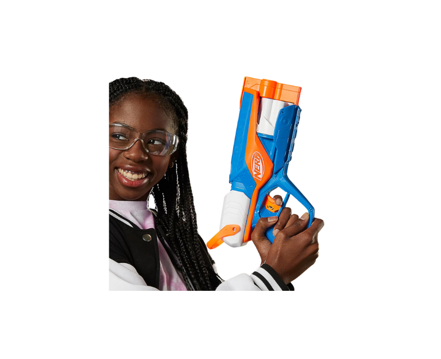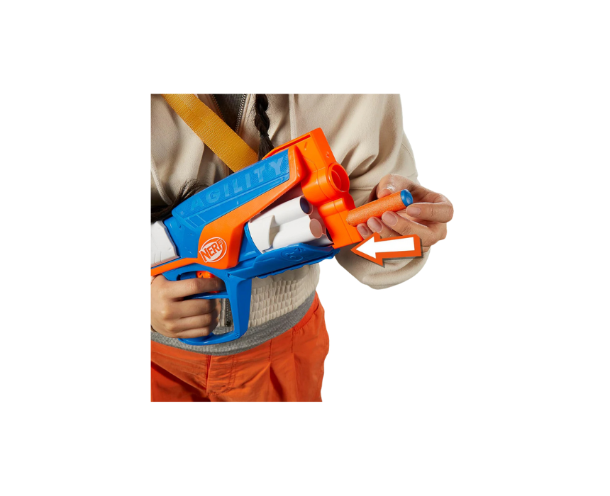 The Nerf N Series Agility blaster delivers extreme accuracy, speed, and distance in a compact, lightweight design made for fast-paced indoor and outdoor play, featuring a 6-dart revolving drum, pull back priming, and 12 included Nerf N1 foam darts compatible only with N Series blasters. Built for highly mobile backyard battles, it offers reliable performance with every shot. For play, wear comfortable active clothing and sneakers to stay agile while dodging and firing.
