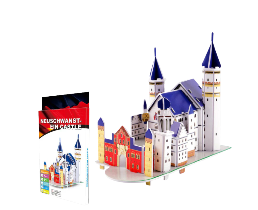 The Neuschwanstein Castle 3D Puzzle Small is a compact architectural model that captures the fairytale charm and intricate details of the famous German castle in a fun and educational build. Once assembled, it can be styled as a decorative accent on desks, shelves, or display areas, adding a storybook-inspired touch to any space. Its small size makes it ideal for gifting, collecting, or easy display.