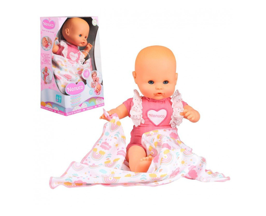Doll toy designed with a soft body and interactive sound feature to create a nurturing play experience. It includes sleeping eyes and a blanket for caring role play and bedtime storytelling. Perfect for playtime, it can be styled as a comforting and engaging activity for kids.