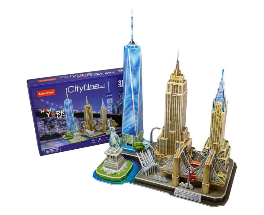 This New York Cityline 3D puzzle recreates the iconic skyline with detailed pieces inspired by landmarks such as the Statue of Liberty, Empire State Building, Chrysler Building, and Brooklyn Bridge. Designed for an engaging building experience, it forms a striking cityscape display once assembled. Ideal for collectors, it adds a unique architectural touch to home or office décor.