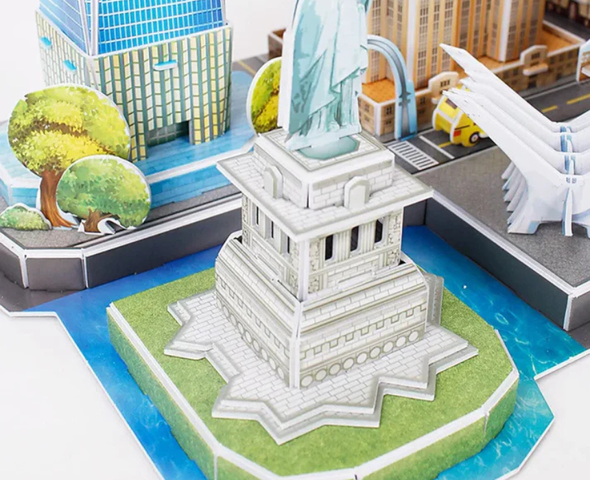 New York Skyline With LED Lights 3D Puzzle Large is a detailed model of the iconic cityscape, featuring built-in LED lights for a stunning illuminated display. Made from durable lightweight pieces, it assembles into a striking three dimensional décor perfect for desks, shelves, or living spaces. Ideal for puzzle enthusiasts, travelers, and collectors, it provides an engaging activity while celebrating the beauty of New York City at night.