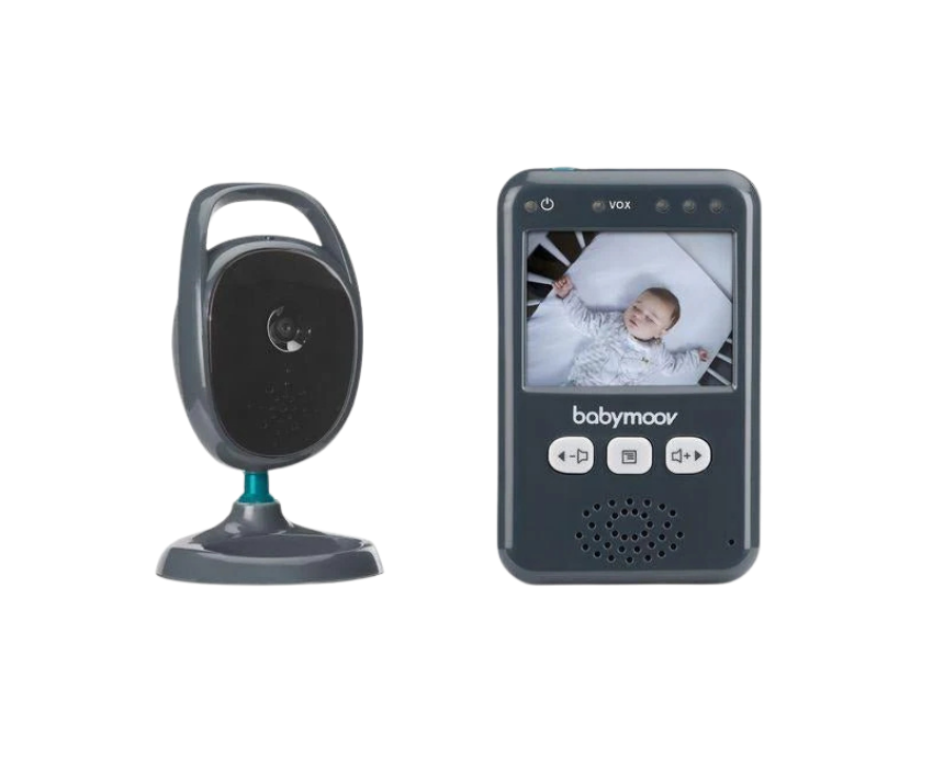 Designed for newborns, this video baby monitor allows parents to see and hear their baby clearly through a compact 2.4-inch digital screen with excellent audio and night vision. It features VOX voice activation that automatically turns the display on when sound is detected, a 250 m range for flexible movement, and a rotating, wall mountable camera for optimal viewing angles. With a rechargeable receiver and simple controls, it offers reliable everyday monitoring and peace of mind during sleep.