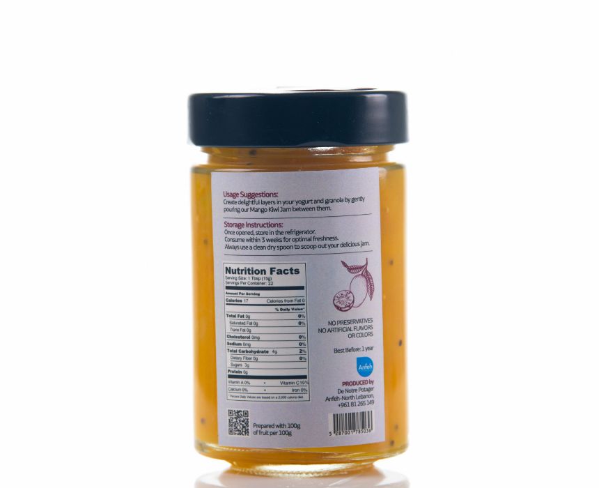 Enjoy the refreshing blend of sweet mango and tangy kiwi in our non-added sugar jam, made from 100% natural fruits. Low in calories and free from artificial sweeteners and preservatives, it’s a guilt-free indulgence. Certified gluten-free, it accommodates various dietary restrictions. Its smooth texture and vibrant flavor make it a versatile addition to toast, yogurt, pastries, and desserts. 330G.