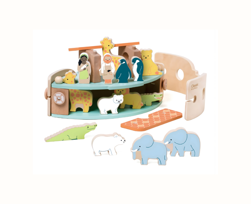 Designed for children aged 18 months and up, the Classic World Noahs Ark Construction Kit lets kids build their own ark while learning about animals and engaging in imaginative storytelling. This hands on activity encourages creativity, fine motor skills and early problem solving through fun and educational play.