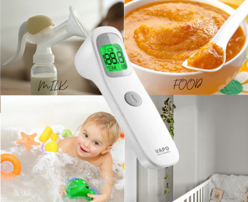 The Non-Contact Digital IR Thermometer provides fast, accurate, and hygienic temperature readings for both body and objects. Featuring dual-mode functionality, LED fever guidance with color indicators, beep alerts, and 30-reading memory storage, it helps parents and caregivers monitor health with confidence. With environmental temperature adaptation, ℃/℉ switch, and energy-saving backlight, it’s ideal for checking body temperature, milk, bathwater, or room conditions.