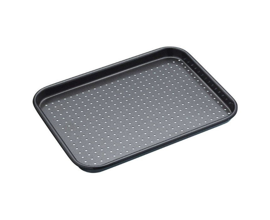 The MasterClass Non-Stick Baking Tray (24 x 18 cm) from the Crusty Bake collection is perfect for making crispy homemade chips, shortbread, and other baked treats. Made from durable steel with Quantum 2 non-stick coating, perforated holes, and PFOA, PTFE, and BPA free, it ensures even cooking and easy release. Dishwasher, oven, fridge, and freezer safe, this tray is built to last with a 20-year guarantee and a 5-year non-stick guarantee.
