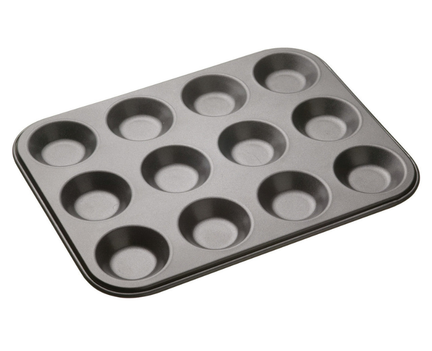 This MasterClass 12-Hole Non-Stick Shallow Baking Tray is made from heavy-duty steel with a grey non-stick coating, ideal for baking jam tarts, mince pies, and buns. Measuring 32 x 24 cm with 6 cm shallow depressions, it is oven, fridge, freezer, and dishwasher safe, and comes with a 20-year guarantee and 5-year non-stick guarantee. Perfect for home bakers, it can be used for festive treats or everyday baking while ensuring easy release and quick cleanup.