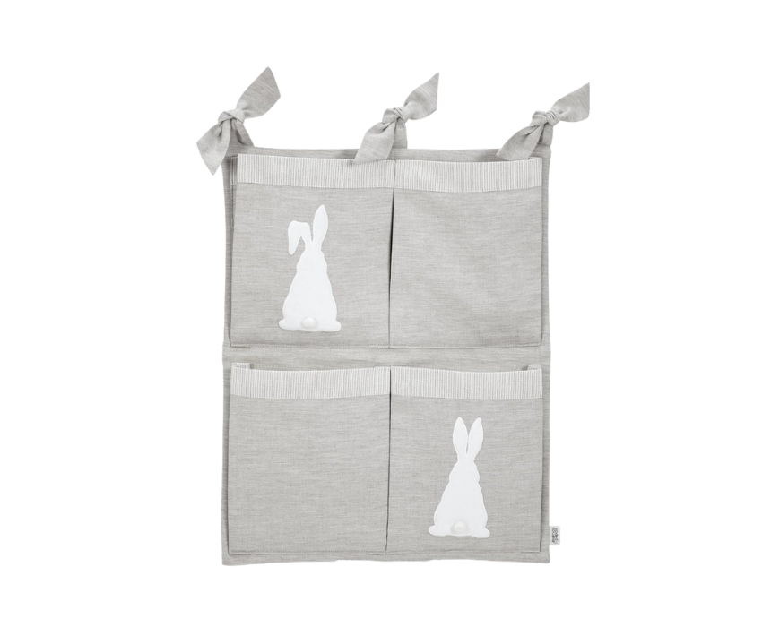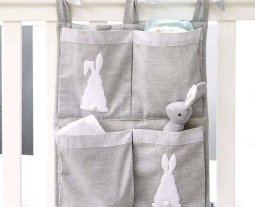 The nursery hanging storage organizer is designed to keep baby essentials neatly arranged while adding a decorative touch to the nursery space. Made from soft 100% cotton with a charming bunny rabbit design, it features multiple pockets for storing toys, books, and small accessories. Lightweight and easy to hang, it helps maintain an organized and functional nursery while blending seamlessly with existing décor.