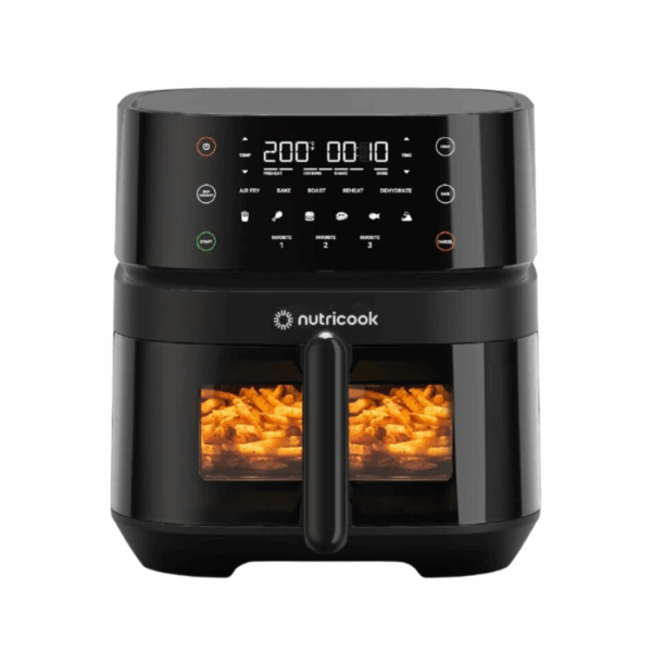<p>The Nutricook Air Fryer Mini NC AFM033K is a compact 3.3 liter, 1500 watt air fryer that delivers fast and healthier cooking with less oil. It features eight one touch programs including Air Fry, Bake, Roast, Reheat, and presets for fries, chicken, burger, and steak, plus SmartTemp technology and a cooking status indicator. Designed for up to four people, it combines powerful performance with easy cleaning and a sleek black finish.</p>