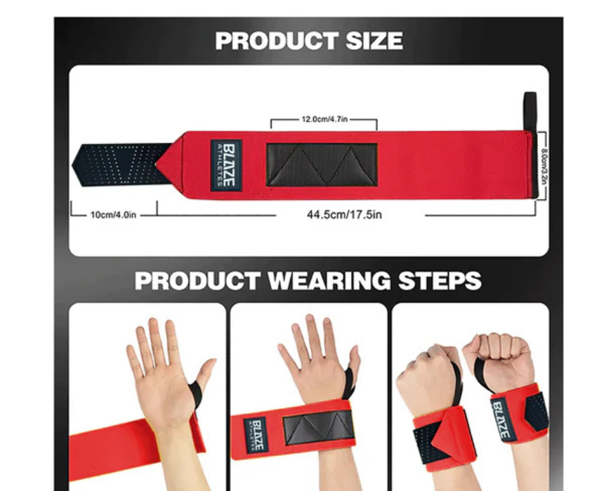 The Blaze Nylon Wrist Wraps 2 are durable support wraps measuring 55cm in length and 8cm in width, designed to enhance wrist stability and reduce fatigue during heavy lifting, CrossFit, and functional training. Made from high-quality nylon with an adjustable Velcro closure, they offer extended coverage and a secure, comfortable fit. For best use, wrap snugly around the wrist and fasten firmly to maintain proper form and support throughout each lift.