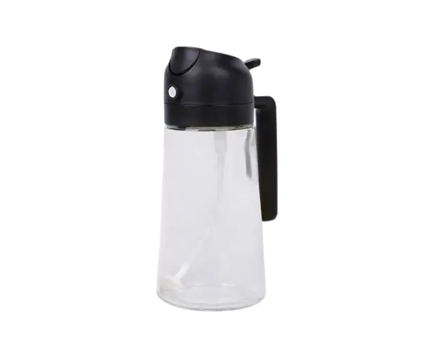 This 500ml oil sprayer offers dual dispensing for pouring and spraying allowing precise control over oil usage with approximately 0.15g per spray. Its unique nozzle delivers a fine mist or steady stream for even coverage while the durable glass construction is safe non toxic odorless and heat resistant. Perfect for kitchen use it helps manage dietary preferences and keeps cooking clean and organized.