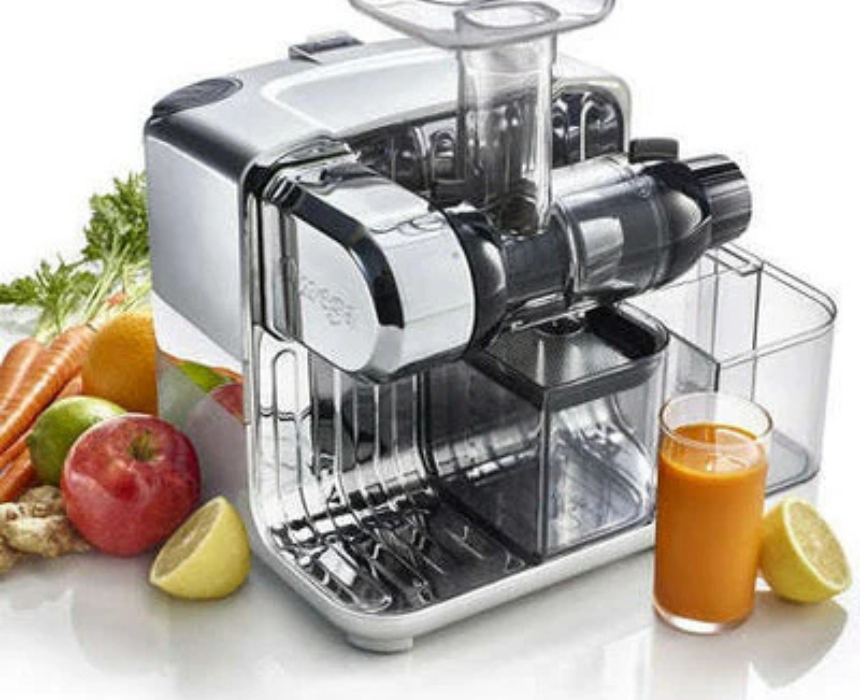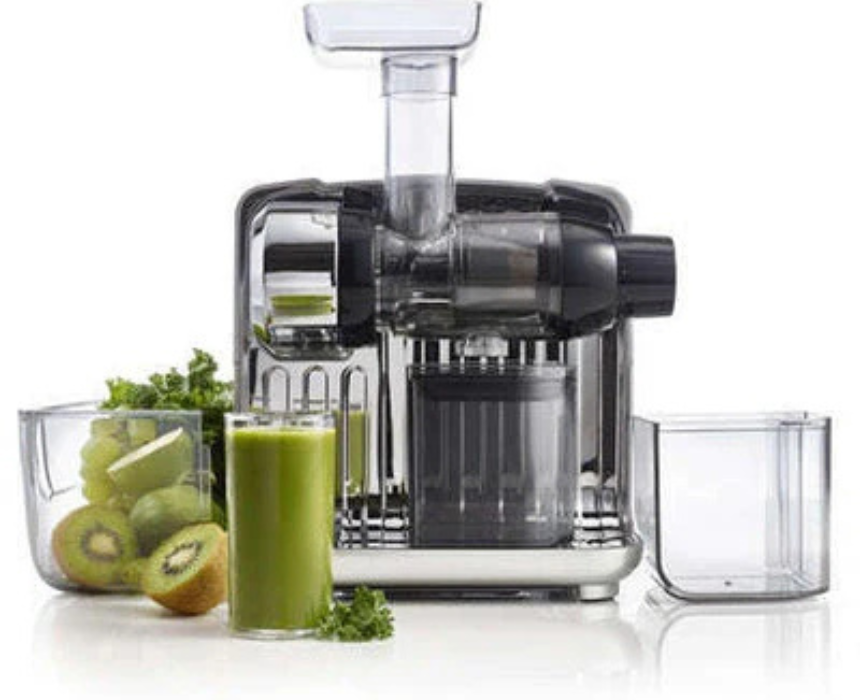 The Omega Juice Cube and Nutrition System is a compact slow juicer powered by a 200W motor that runs at 80 RPM to help extract juice efficiently while preserving flavor and nutrients. Designed for small kitchens and everyday use, it fits neatly on countertops and can be styled as a modern appliance centerpiece alongside other sleek kitchen tools.