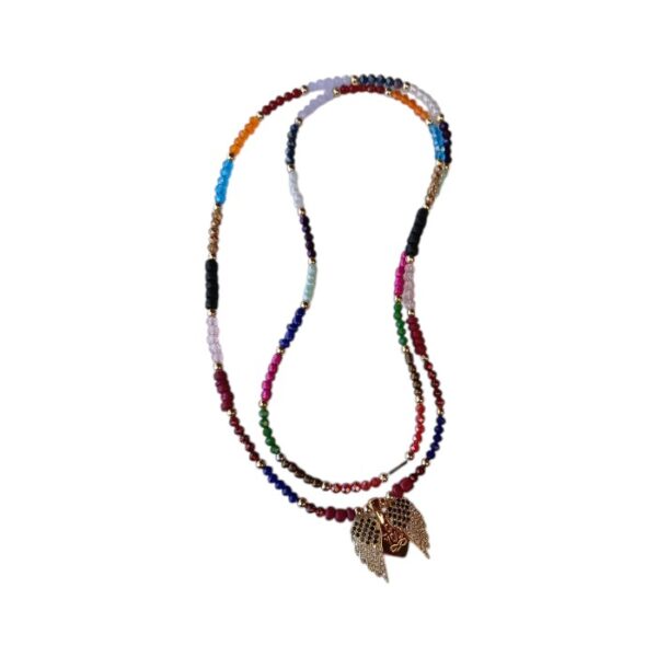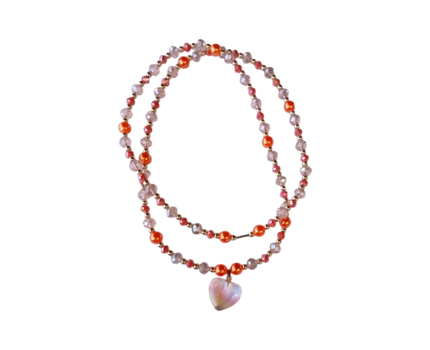 The “O.O.H” is a medium-length handmade necklace bursting with warm energy. It features beige and orange crystals paired with vibrant orange pearls, all anchored by a matching orange heart-shaped pendant. This cheerful accessory is perfect for brightening up a neutral outfit or adding to your summer jewelry collection. Crafted with care and high-quality materials, it offers a secure fit and a lightweight feel that you can comfortably wear all day long.