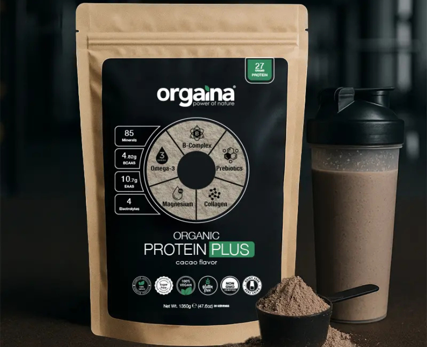 Organic Protein Plus combines plant-based protein, dark cacao, and nutrient-rich superfoods to support muscle strength, sustained energy, and overall wellness. This chocolate-flavored blend also provides collagen, boosts immunity, and aids stress balance and recovery. Enjoy it as a daily supplement or post-workout shake to nourish your body and mind naturally.