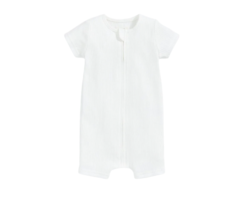 Organic Ribbed Zip Romper in White