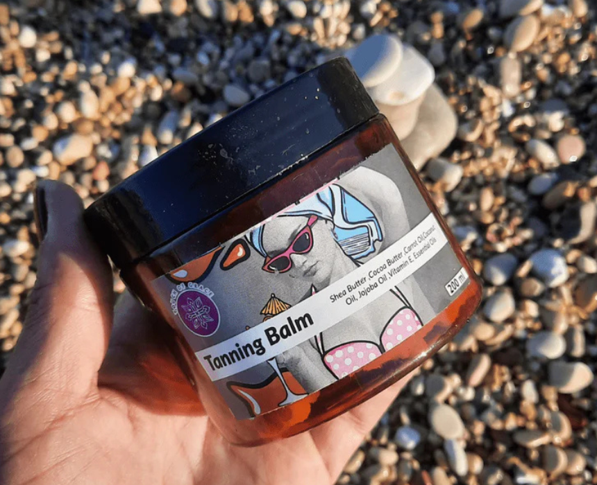 The Organic Tanning Balm is a rich, hydrating formula designed to lock in moisture while enhancing a natural, radiant tan. Made with Shea Butter, Cocoa Butter, Carrot Oil, Jojoba Oil, and Vitamin E, it nourishes deeply and protects skin from dryness and environmental stress. Apply evenly before sun exposure or layer over skin for a smooth, glowing finish.