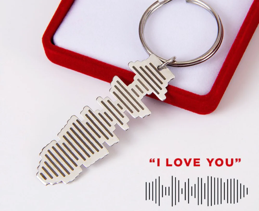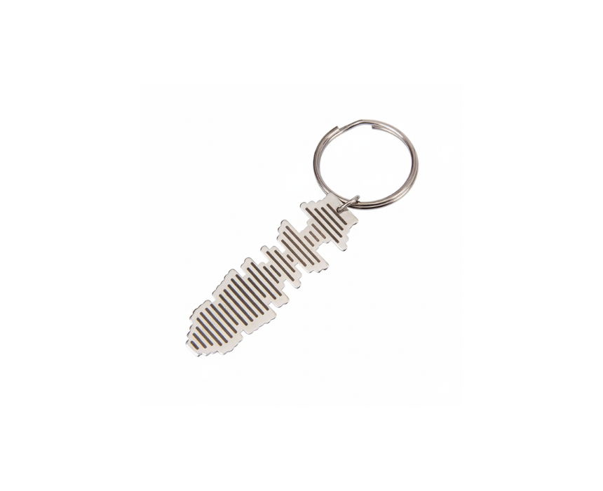 The Our Little Secret Sound Wave Engraved Keychain is a sentimental silver accessory that transforms your personal voice recordings into a unique visual waveform. This custom piece features a high quality engraving on one side with a sleek plain finish on the reverse and arrives beautifully presented in a signature turquoise jewelry box. To style this meaningful keepsake, attach it to a set of sentimental keys or clip it to the inner zip of a luxury handbag to keep a loved one’s voice close to you every day.