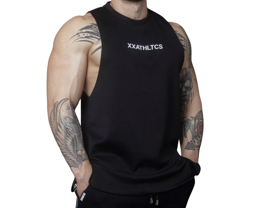 The XXATHLTCS oversized fit tank top by doublexxcollection is a unisex design crafted from premium heavy scuba material, featuring a relaxed oversized cut, a bold high-density XXATHLTCS print at mid chest, a small rubber label below the neck on the back, and two vertical parallel stripe stitches for added style. Available in classic black, it combines comfort with a strong athletic streetwear aesthetic. Style it with joggers, sweatpants, or layered under hoodies for a versatile athleisure look.