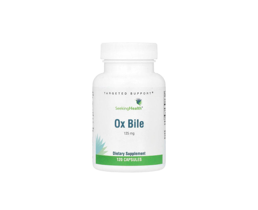 Seeking Health Ox Bile is a dietary supplement formulated to support fat digestion and enhance nutrient absorption by providing bile salts. It is suitable for individuals needing digestive support, particularly those with reduced bile production or gallbladder concerns. Take with meals as directed to help improve digestion and overall nutrient utilization.