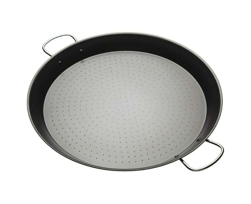 This non-stick paella pan brings the authentic taste of Spain to your kitchen, ideal for cooking traditional Valencian or seafood paellas, as well as risottos, curries, and stir-fries. Made from durable carbon steel in black, it is dishwasher-safe and suitable for all hobs except induction, making it a versatile and easy-to-use cooking essential for family meals and creative culinary adventures.