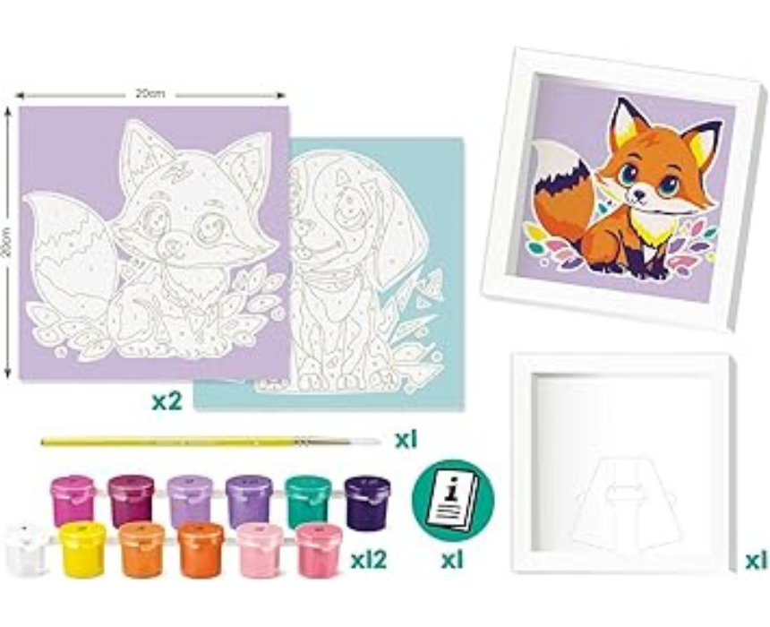 Paint by Numbers Dog and Fox is a relaxing art kit that guides users to create a charming animal themed painting with ease. Featuring pre numbered sections and matching paints, it helps improve focus and creativity while delivering a rewarding finished piece. Ideal for solo relaxation or shared creative time, it can be styled as decorative wall art once completed.