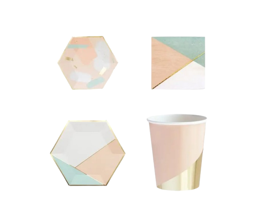 The Green & Pink Paper Set is a colorful party kit featuring 8 nine-inch plates, 8 seven-inch plates, 16 napkins, and 8 cups. Perfect for birthdays, themed parties, or celebrations, it makes table setup easy and coordinated. Its vibrant green and pink design adds a festive and playful touch to any event.