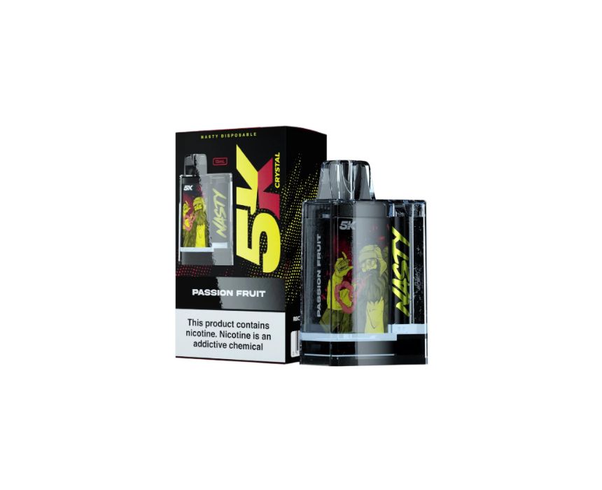 Enjoy the tropical taste of passion fruit with the NASTY 5K Crystal. This disposable vape offers 5000 puffs of smooth, flavorful vaping with a refreshing, fruity sensation in every draw. Featuring a 850mAh pure cobalt battery and 50mg nicotine strength, it’s designed for long-lasting enjoyment and a satisfying hit every time.
