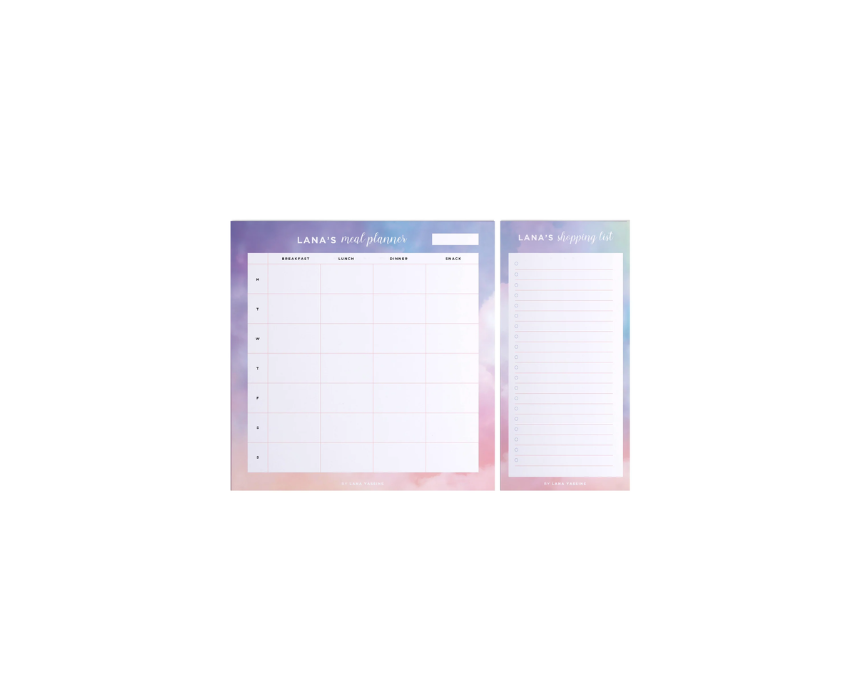 The Pastel Clouds Meal Desk Planner is a dreamy two pad set featuring fifty three tear off sheets per pad to help you organize your weekly dining and grocery lists with ease. This whimsical stationery kit allows for seamless meal tracking with high quality paper that can be cleanly removed once your preparation for the week is finished. To style this soft aesthetic set, keep the pads on a white workspace next to pastel highlighters for a serene look or use a cute magnet to pin your ripped sheets to the refrigerator for a cheerful and accessible view of your daily menu.