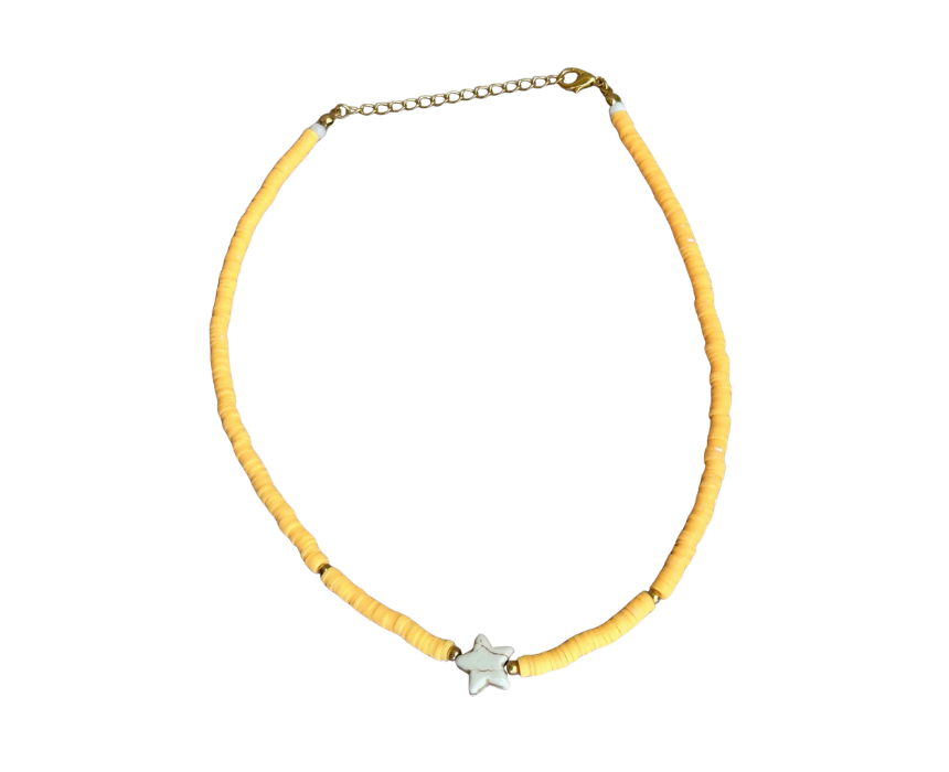 This peach star beads choker features playful star-shaped beads that add a fun and vibrant touch to any outfit. Lightweight and versatile, it can be worn alone for a bold statement or layered with other necklaces for a trendy, personalized look. Perfect for casual wear or adding a pop of color to evening ensembles